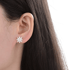 Hermosos y delicados aros en forma de girasol con circones blancos en Plata Fina ley 925 sólida. La calidad del material es garantizada y no posee níquel.