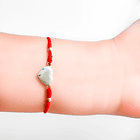 Descubre nuestra pulsera de corazón cóncavo con bolitas de Plata Fina 925 y cordón rojo. Un diseño único para lucir protección y elegancia. ¡Hazla tuya y lleva su magia contigo!
